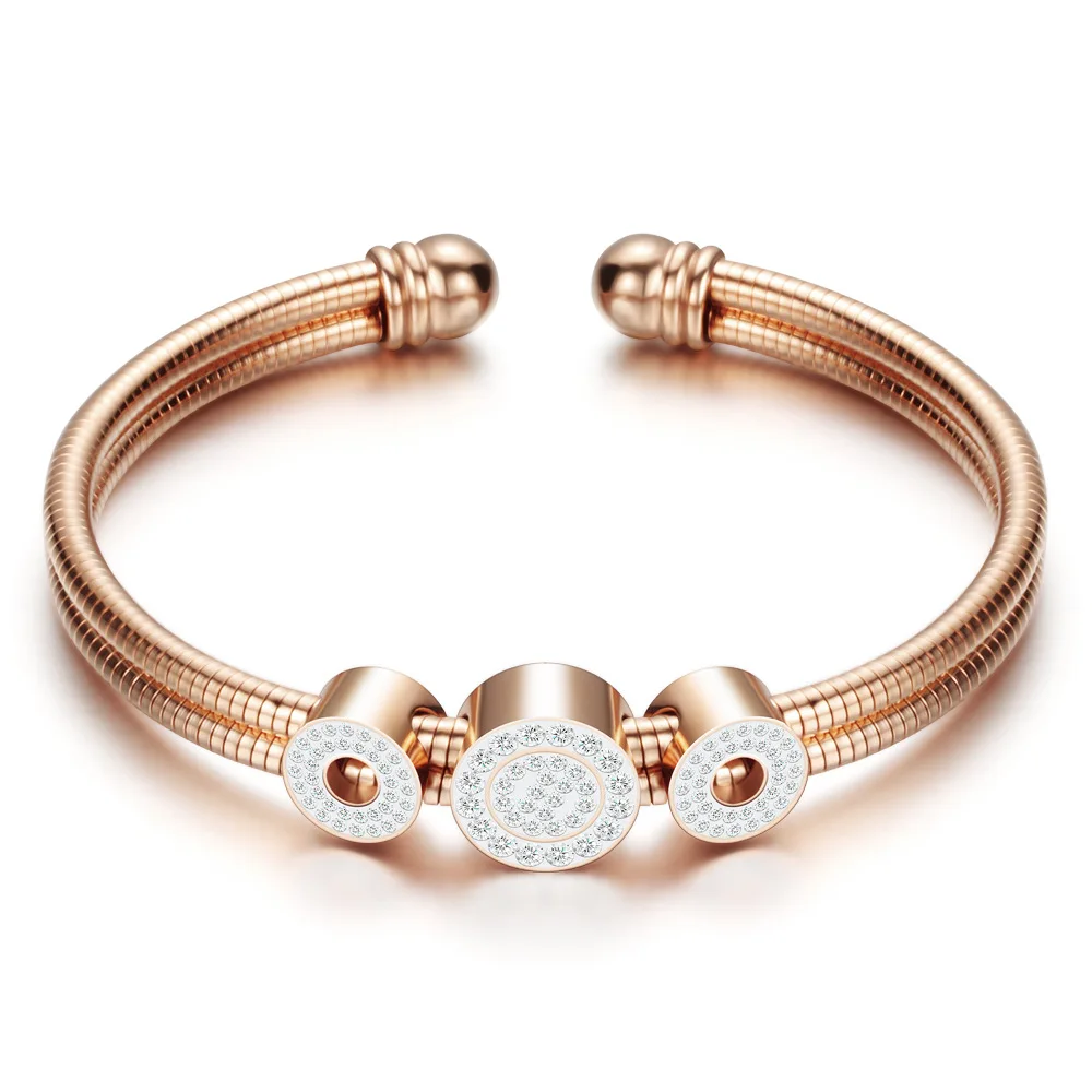 Best Beautiful Womens Bracelet Bangle Stainless Steel Rose Gold Snake Bone Chain Bracelet Crystal Cz Rhi