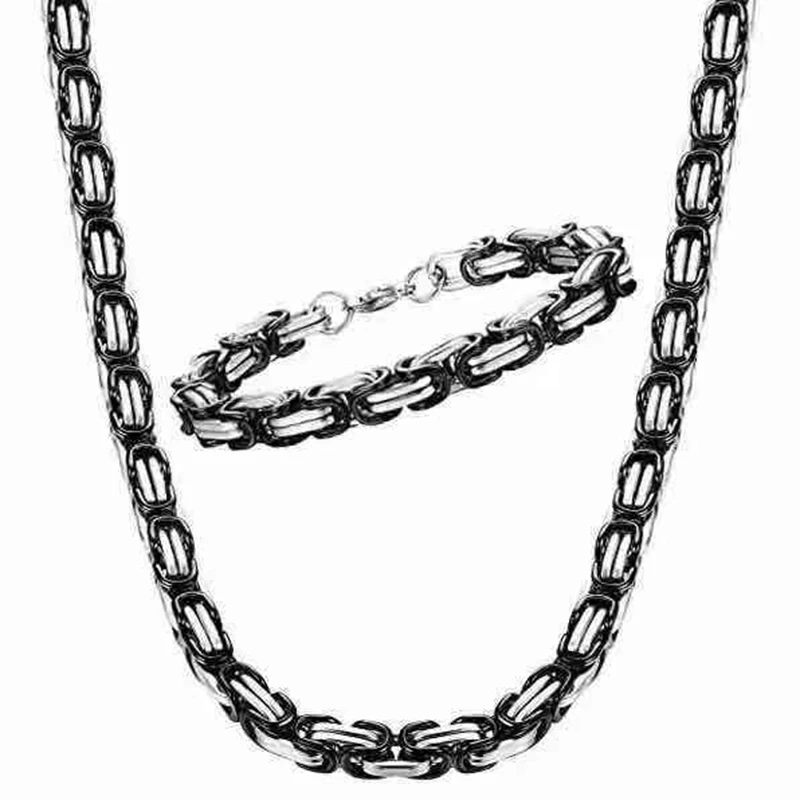 Buy Byzantine Chain Men's Stainless Steel Necklace 4-8MM Fashion Necklaces Bracelet Set Gold Jewelry Gi