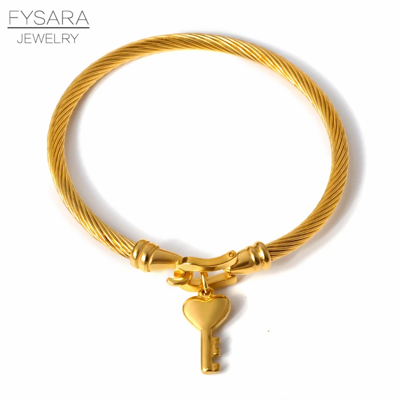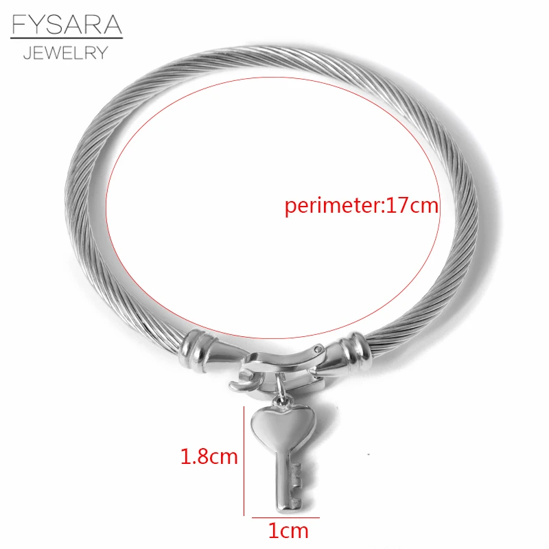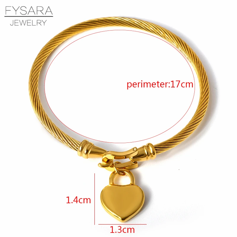 Best FYSARA Lover Heart Charms Bangles For Women Girl Stainless Steel Wire Cuff Bracelets Brand Designer