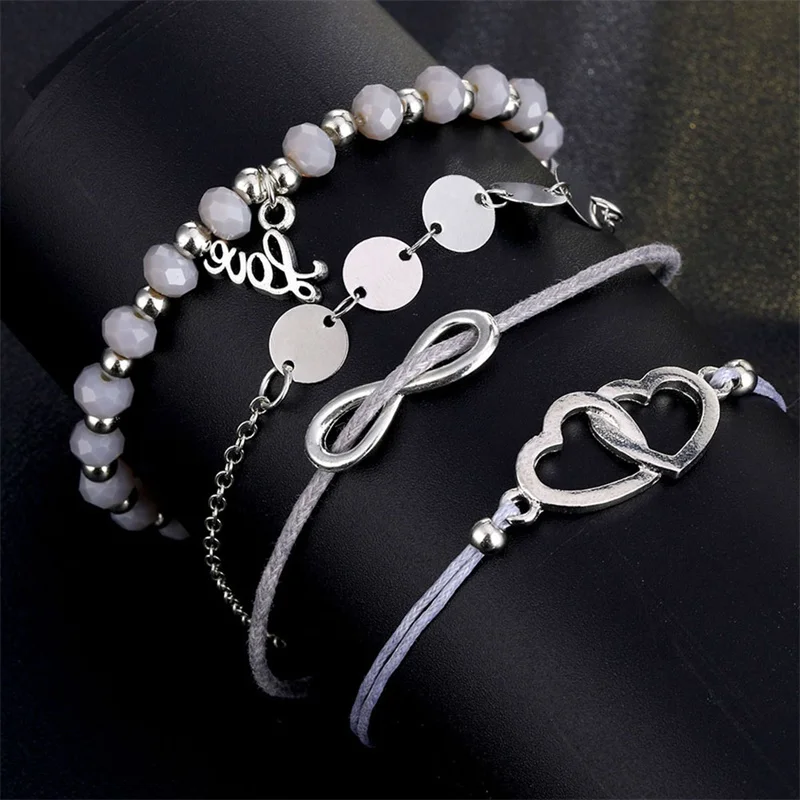 If you search this product, i propose you to take this excelent and best products. I hope KISS WIFE 5 Pcs/ Set Personality Snowflake Star Moon Round Pendant Silver Leather Chain Bracelet Se suitable for your needs.