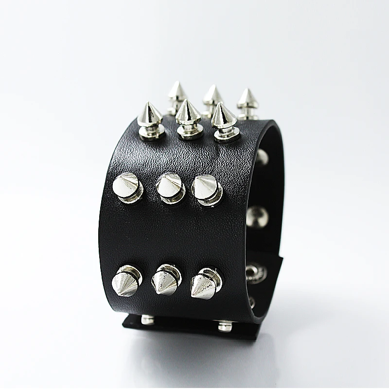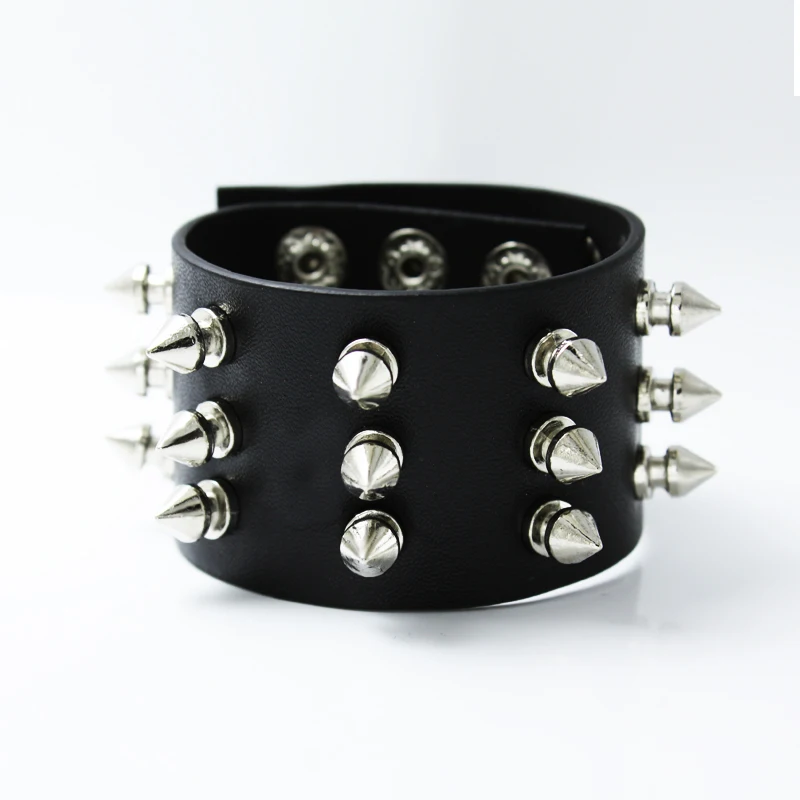 Best Sangsy Unique 1/2/3 Row Cuspidal Spikes Rivet Stud Wide Cuff Leather Punk Gothic Rock Unisex Bangle