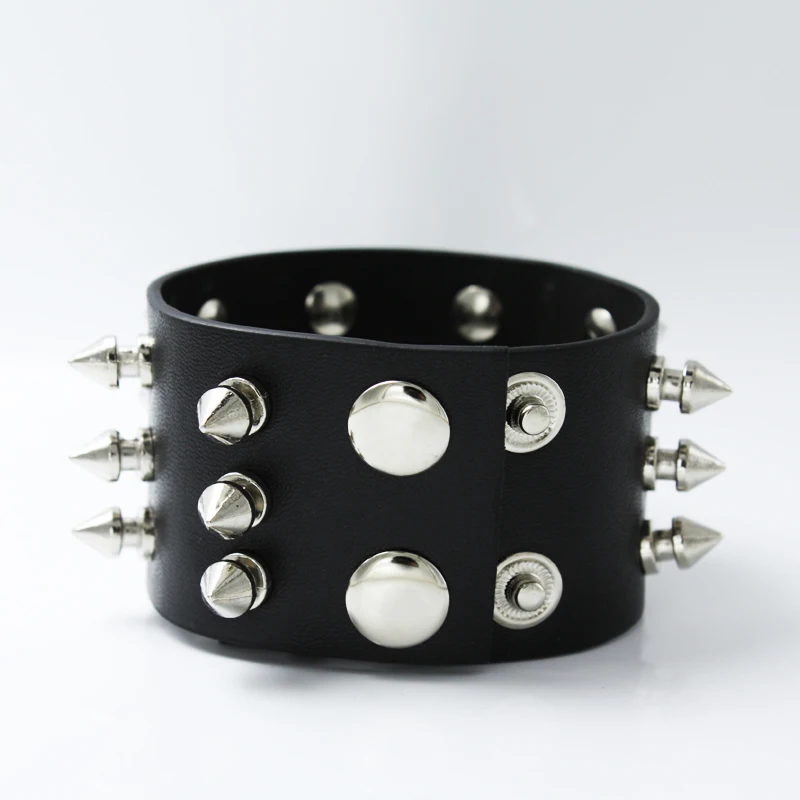 Promo Sangsy Unique 1/2/3 Row Cuspidal Spikes Rivet Stud Wide Cuff Leather Punk Gothic Rock Unisex Bangle