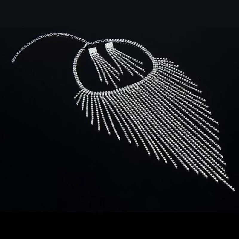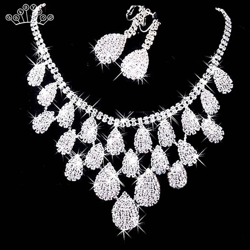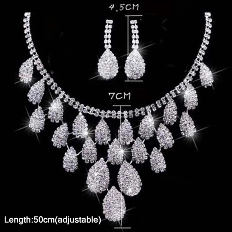 New Silver Color Crystal Bridesmaid Bridal Jewelry Set Rhinestone Wedding Necklace Earrings Jewely Sets