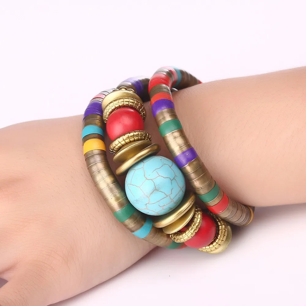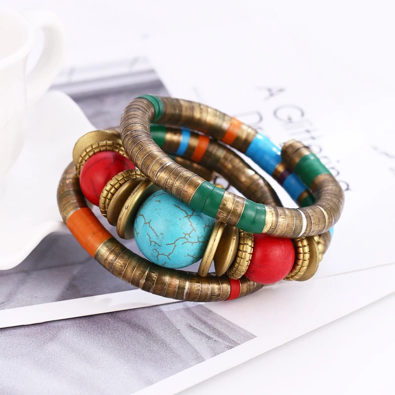 New Vintage Boho Statement Bangle Bracelets Feminino Cuff Chain Nepal Retro Lava Stones Wristband Brace