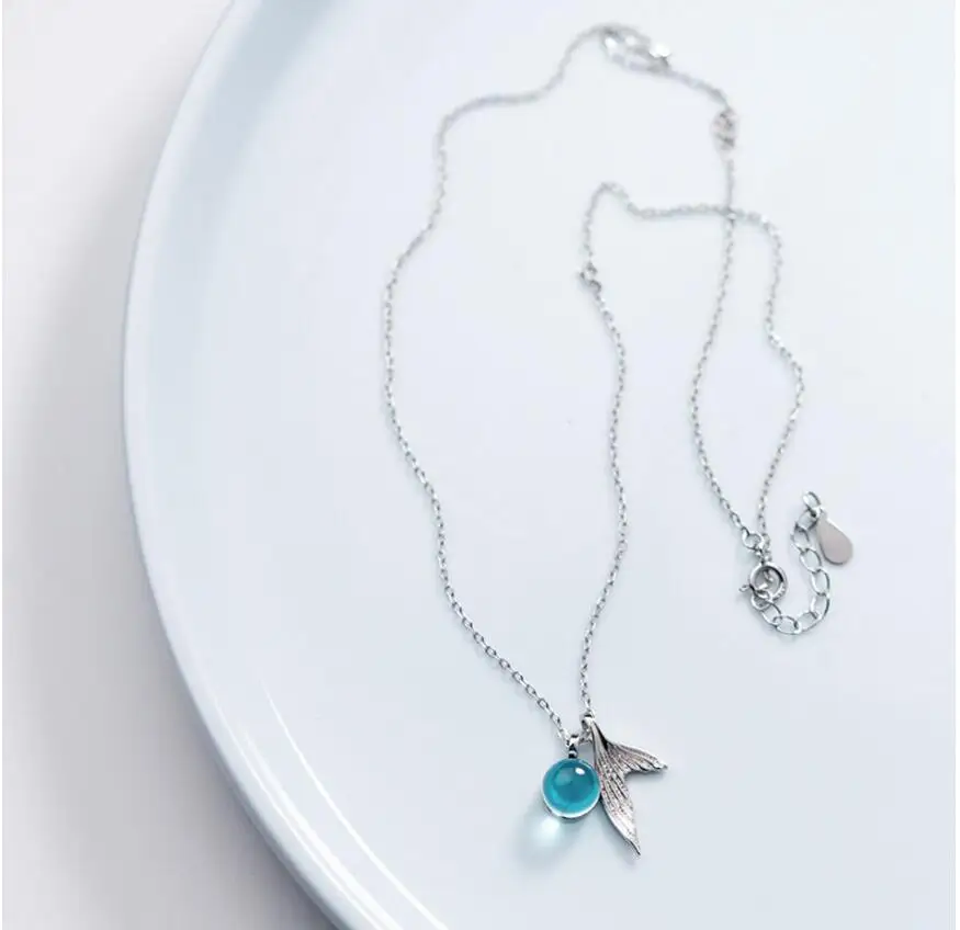 Buy 100% 925 Sterling Silver Blue Crystal Mermaid Pendant Necklace For Women Wedding Birthday Gift Crea