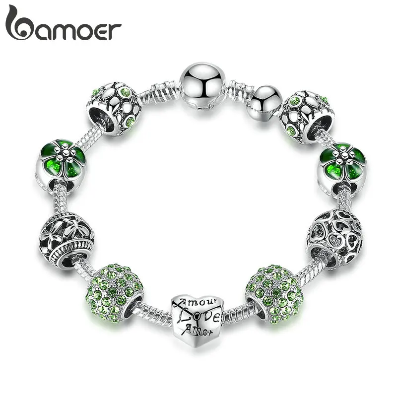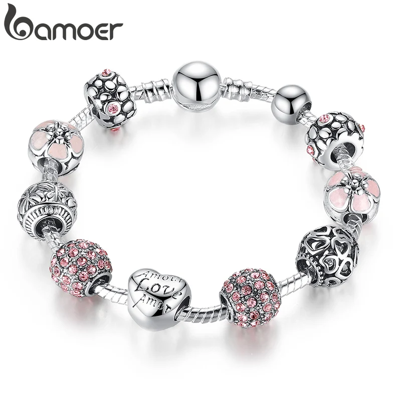 Today i want to review about BAMOER Antique Silver Charm Bracelet & Bangle with Love and Flower Beads Women Wedding Jewelry 4 Co. I uncover this cool product from China Online Store, best manucafturer.