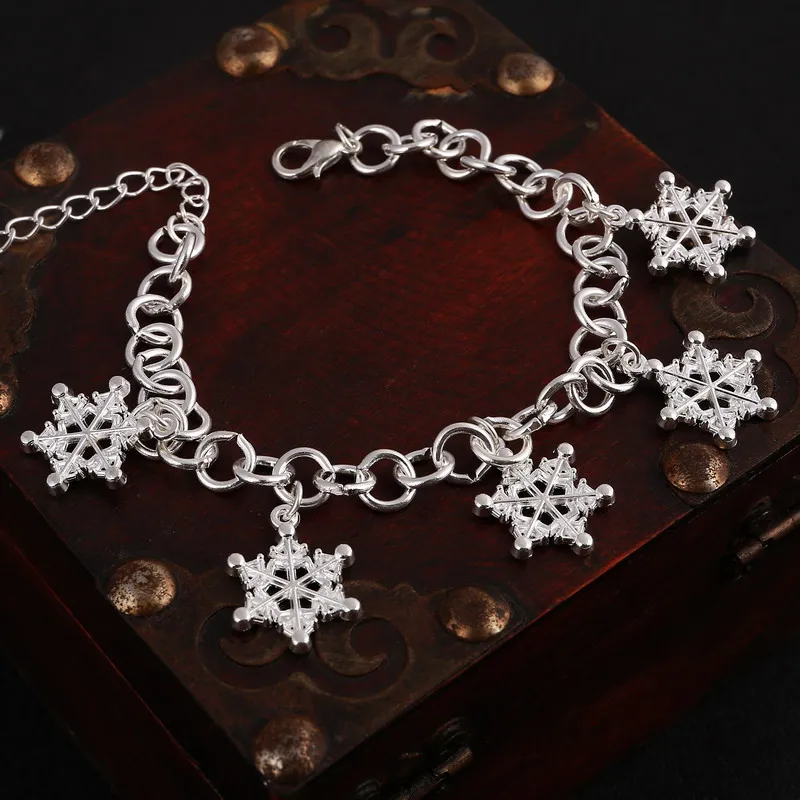 New Famous Jewelry Silver Snowflake Charm Bracelets&Bangles Link Chain Bracelets For Women Pulsera
