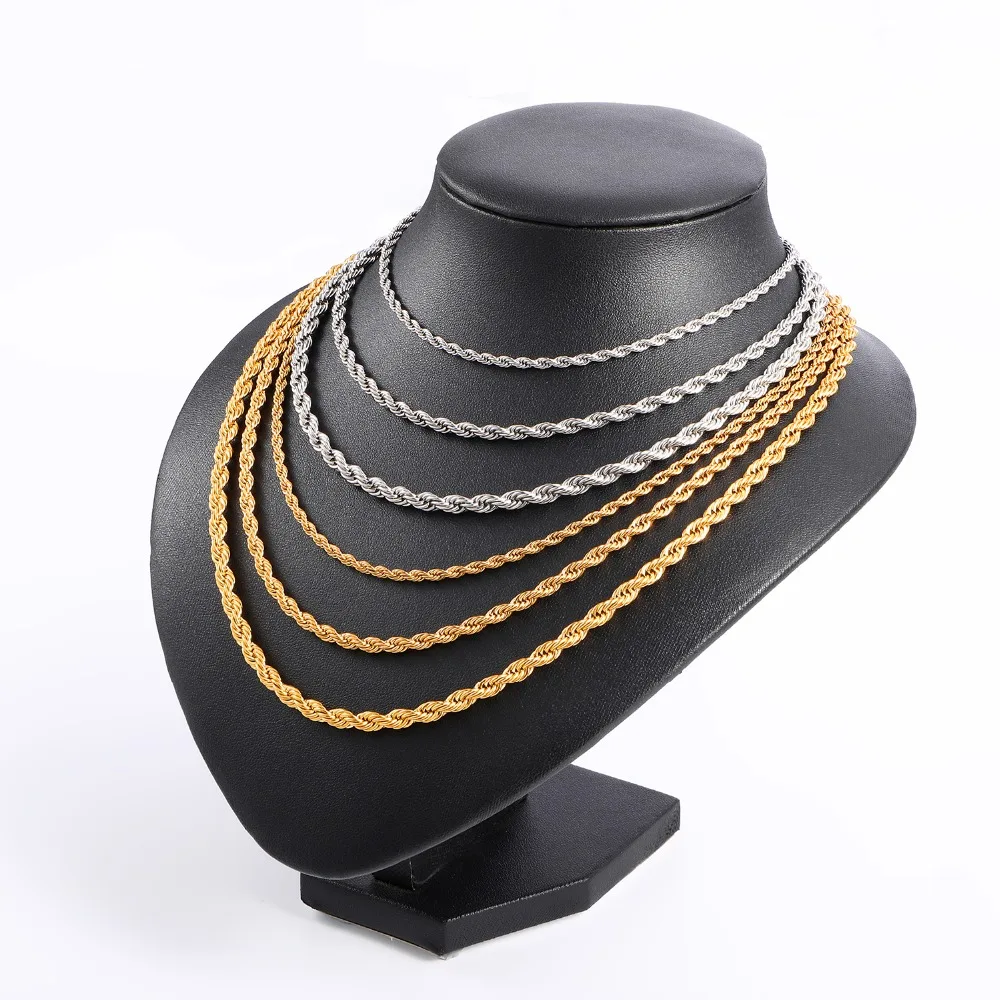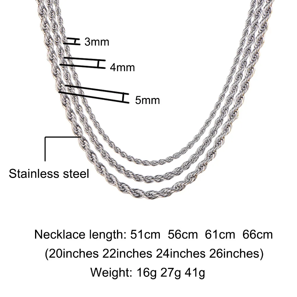 Buy HIP Hop Width 3mm 4mm 5mm Rope Chain Necklace Twisted Gold 316L Stainless Steel Necklaces For Women