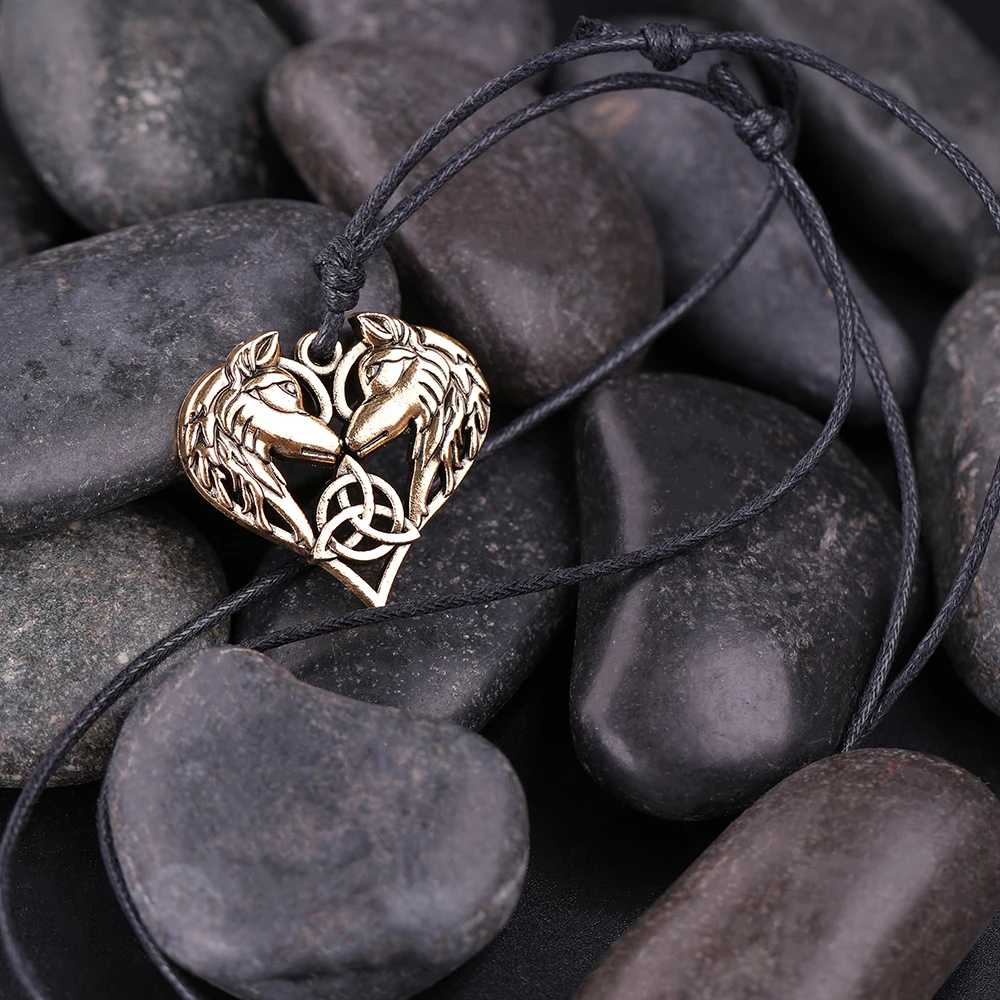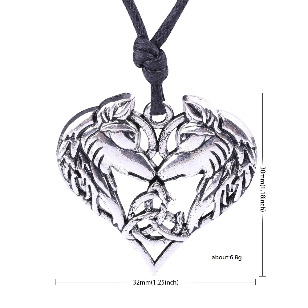 Buy My shape Celtics Spirit Wolf Pendant Necklace Couple Heart Necklaces Love gift Norse Vikings Wolf H