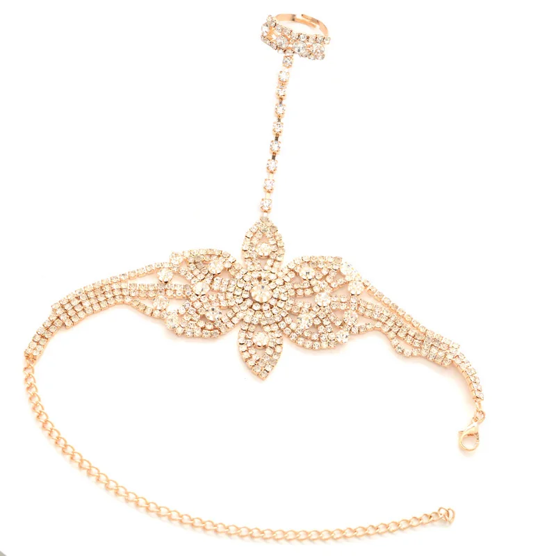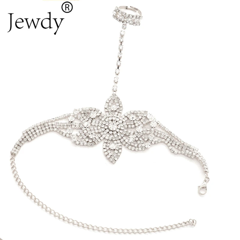 Buy Statement Rhinestone Finger Ring Bracelets for Women Pulseras Mujer Wedding Crystal Bowknot Bangle