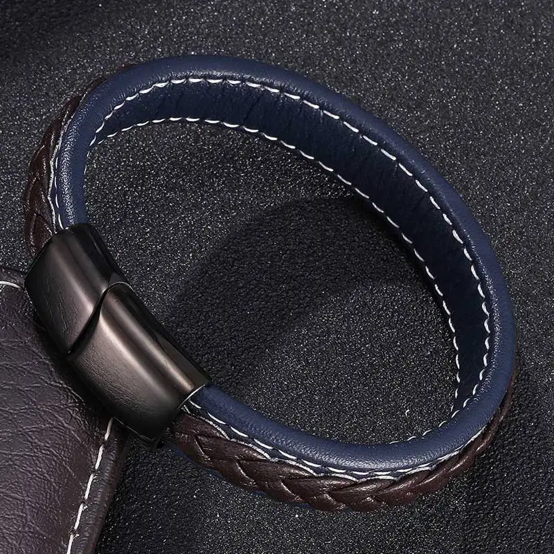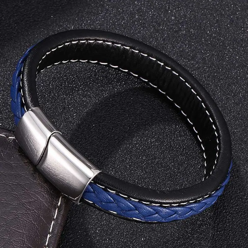 Buy Trendy Mens Bracelets Jewelry Black Red Braided Leather Bracelet Stainless Steel Men Bracelet Jewel