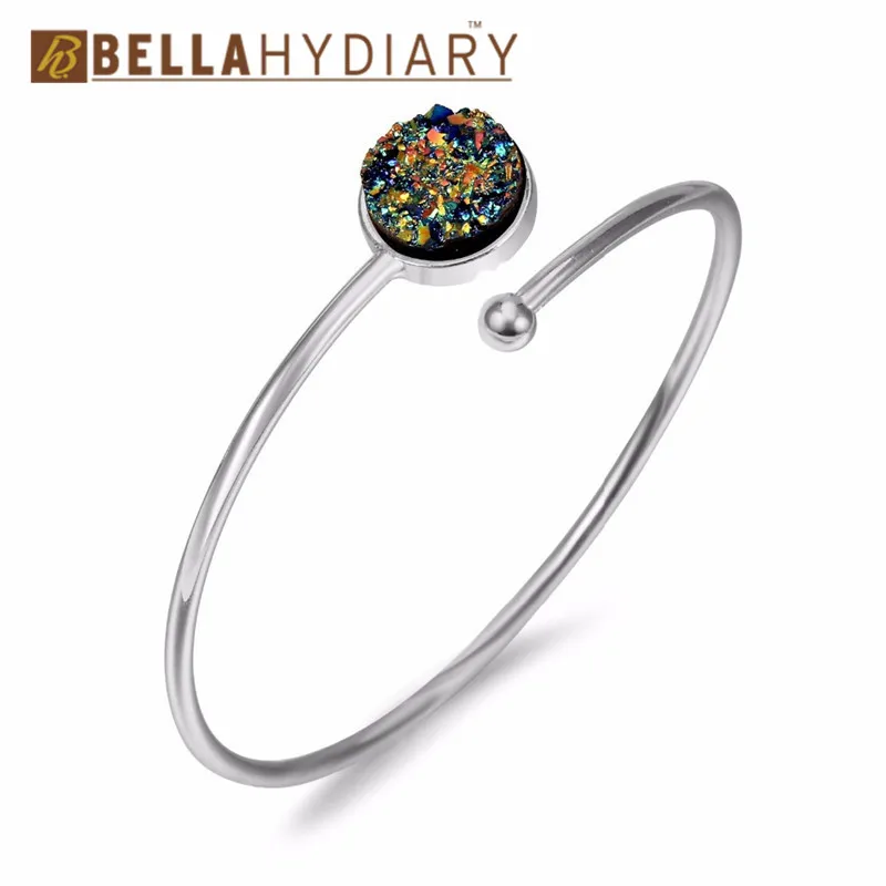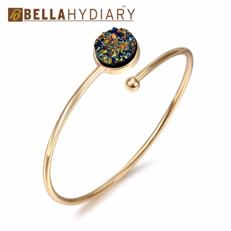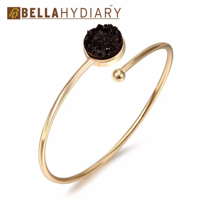 New Bijoux European Geometric Round Resin Druzy Vintage Jewelry Asymmetry Hand Cuff Adjustable Bracelet