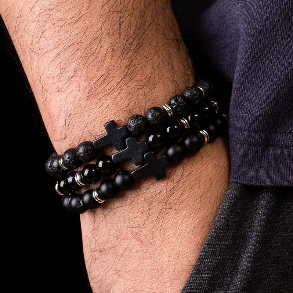 Buy Black Nature Stone Lava Stone Bead Cross Charm Bracelets Bangles For Men Male Buddha Strand Bracele