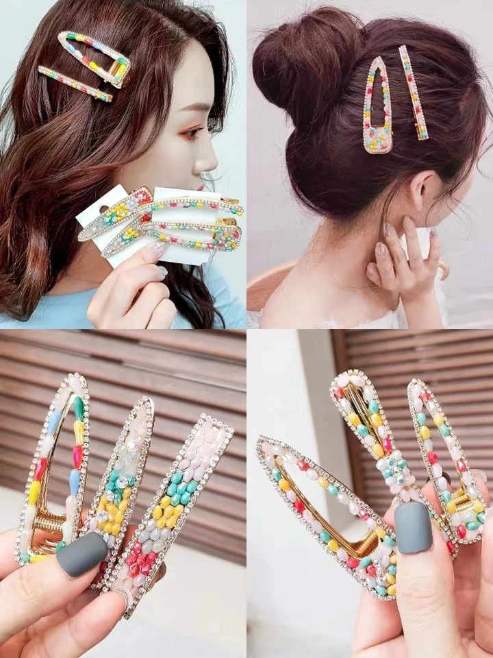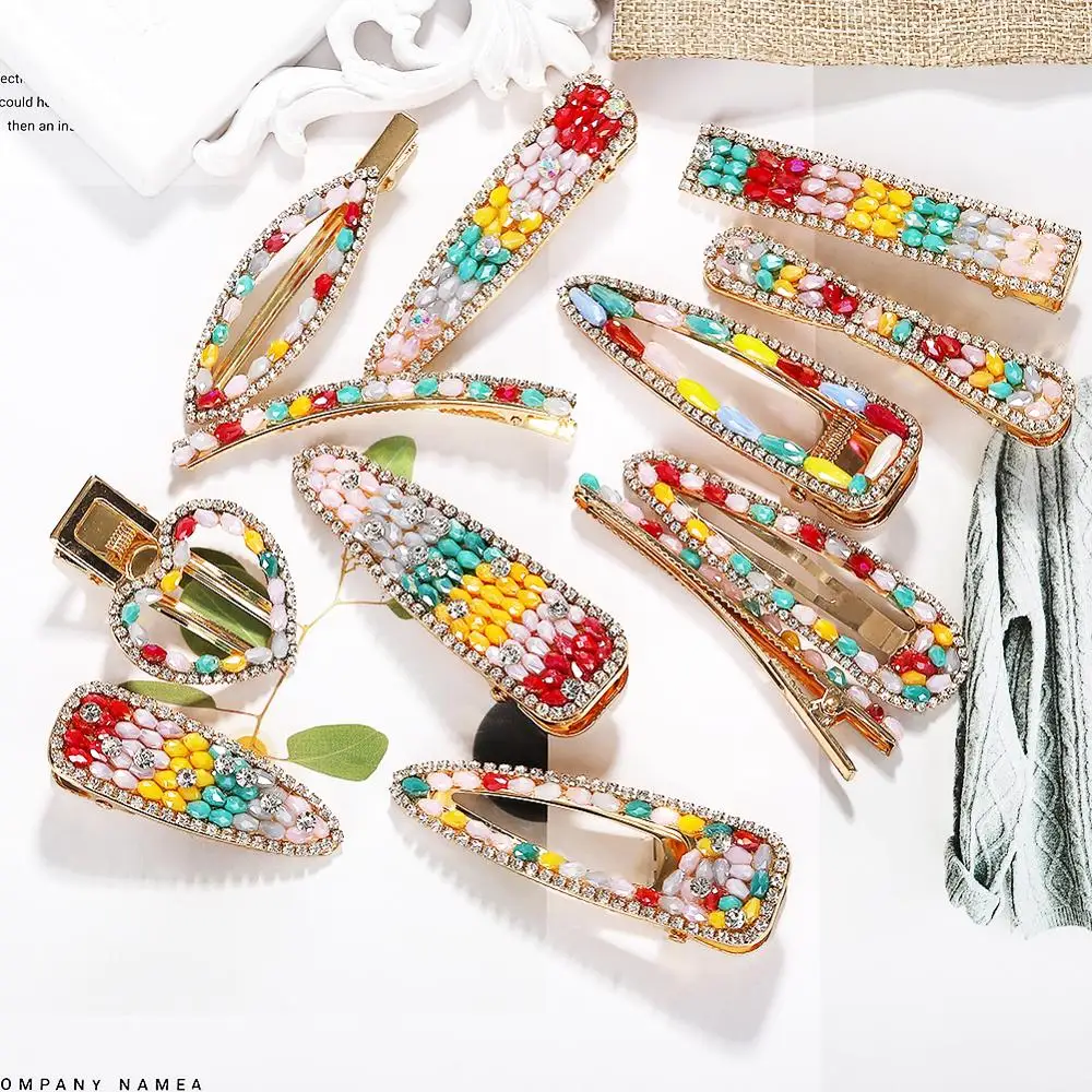 Best Dvacaman ZA Fashion Women Colorful Crystal Barrettes Set Bridal Rhinestone Hair Clip Pins Wedding P