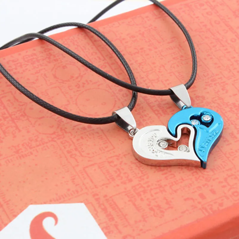 New Fashion 1 Pair Women Men Hot I Love You Heart Shape Pendant Necklace For Lovers Jewelry Gift