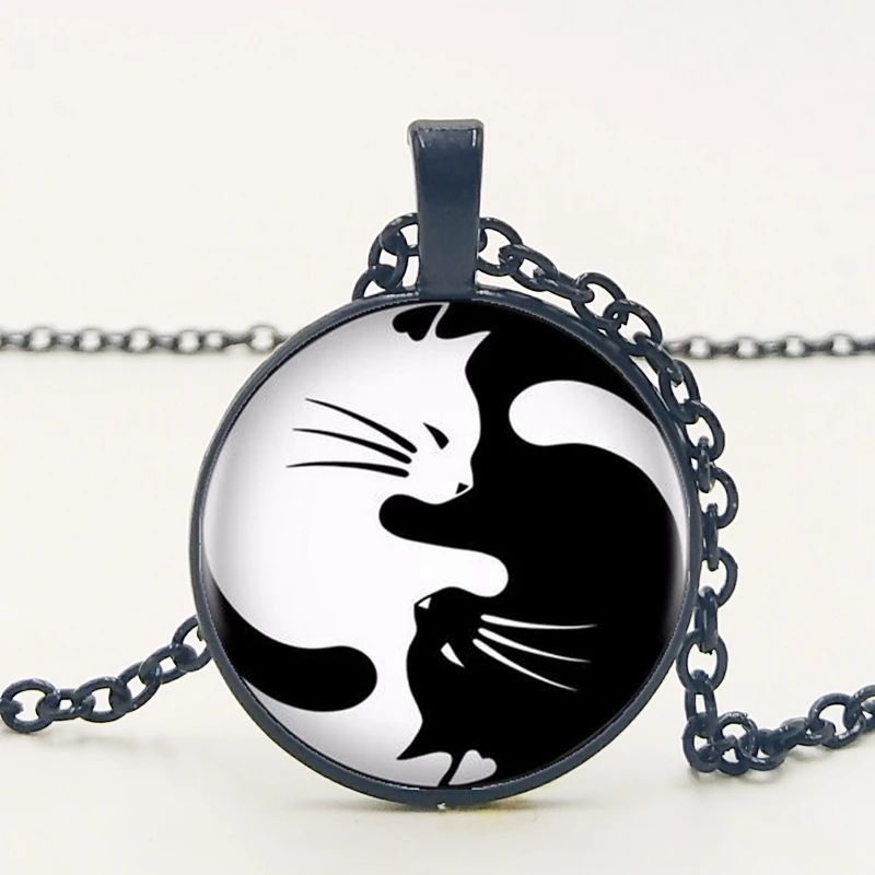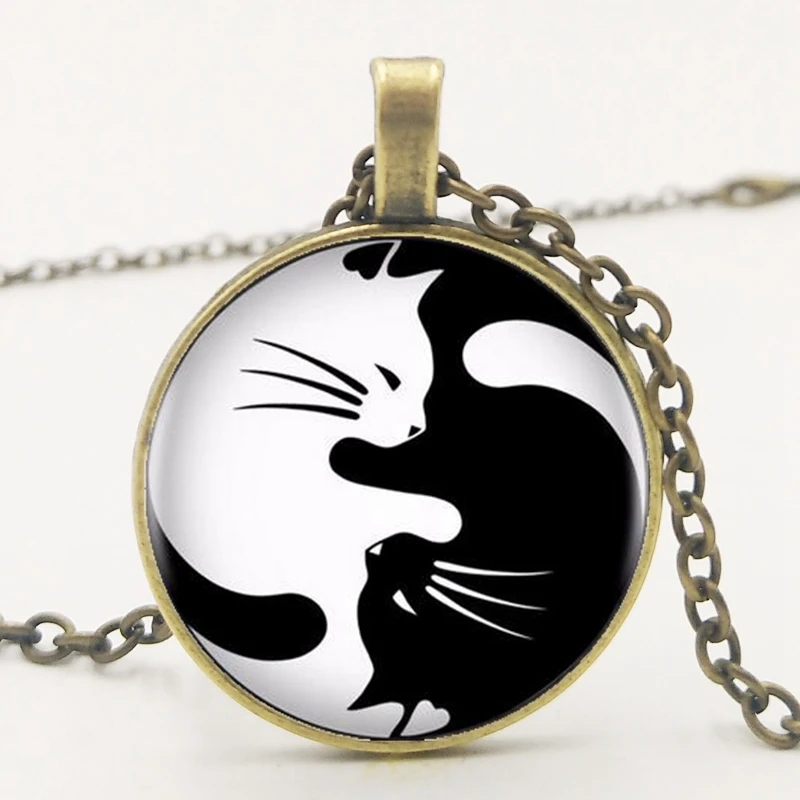 Buy Fashion Vintage Retro Two Cat Necklace Glass Pendant Yin Yang Cat Fish Necklace Fashion Men's Neckl