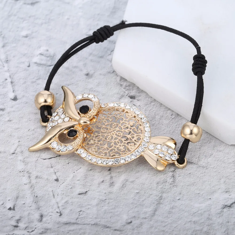 New Gold Owl Charm Bracelet for Women Black Rope Chain Pulsera mujer CZ Crystal Bracelet Femme Party Je