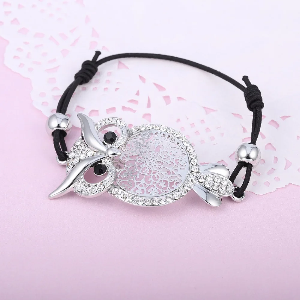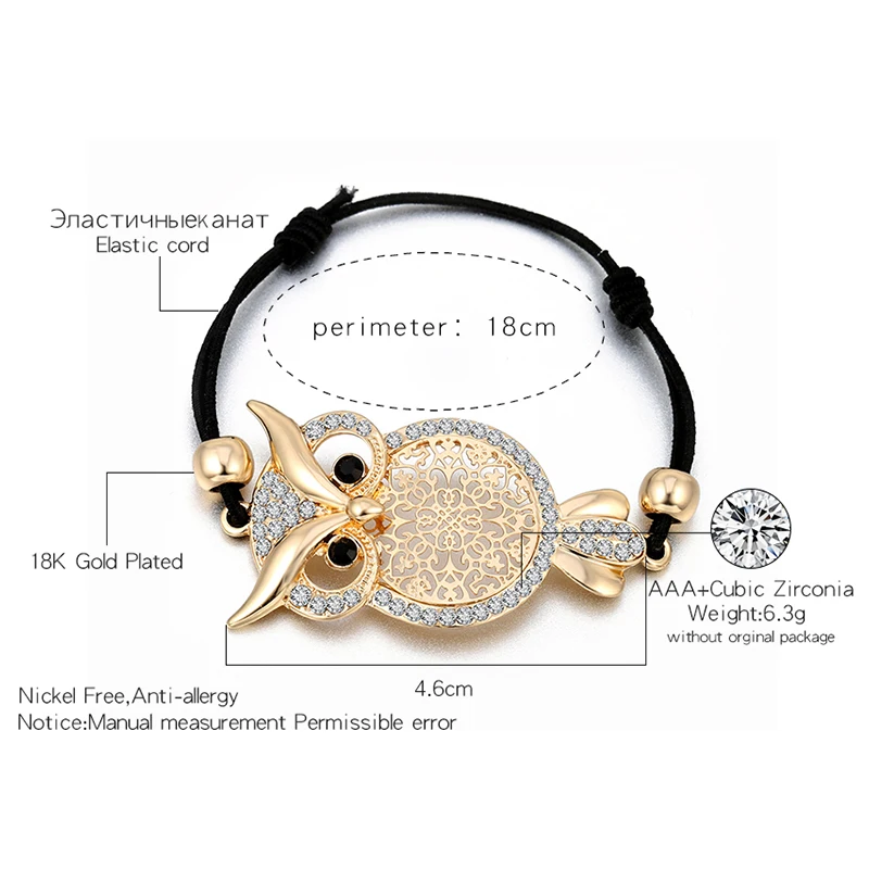 Best Gold Owl Charm Bracelet for Women Black Rope Chain Pulsera mujer CZ Crystal Bracelet Femme Party Je