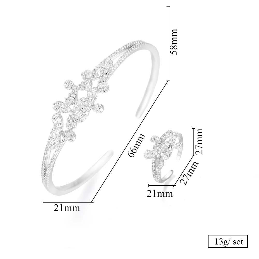 New missvikki Elegant Refined Handmade Sweet Charm Open Bangle Ring Set for Women Bridal Wedding Engage