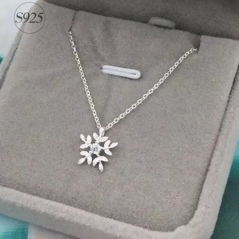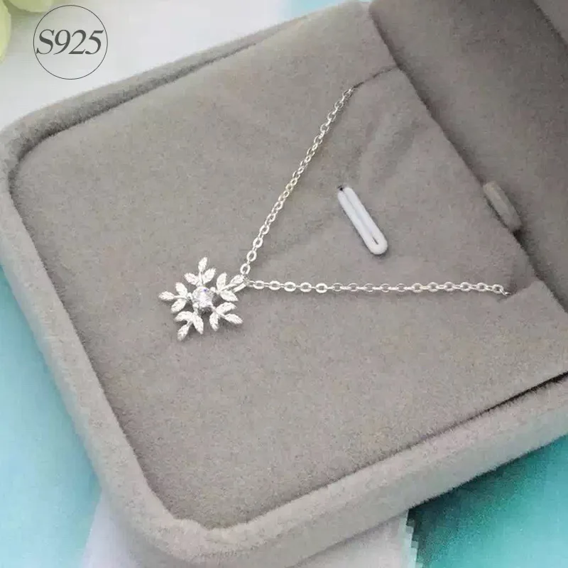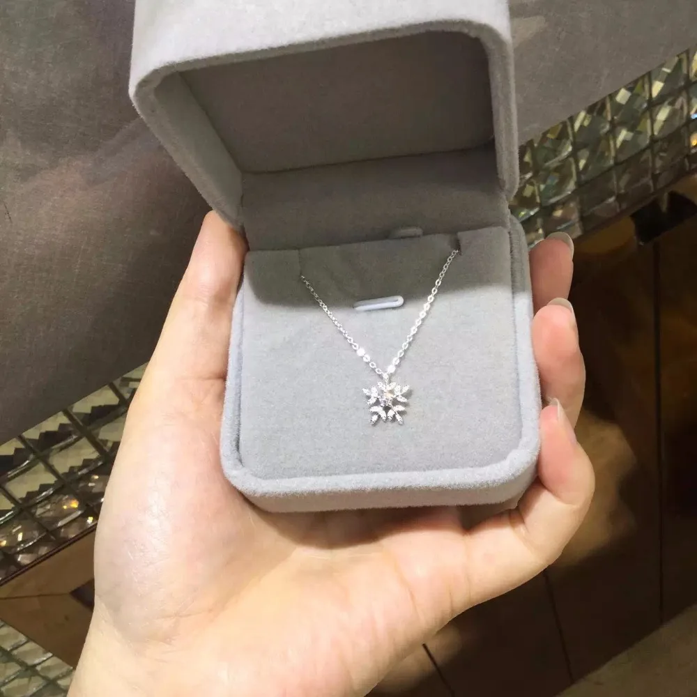 New RYOUCUTE 100% Real Pure New 925 Sterling Silver Zirconia Snowflake Necklaces Pendants for Women Wed