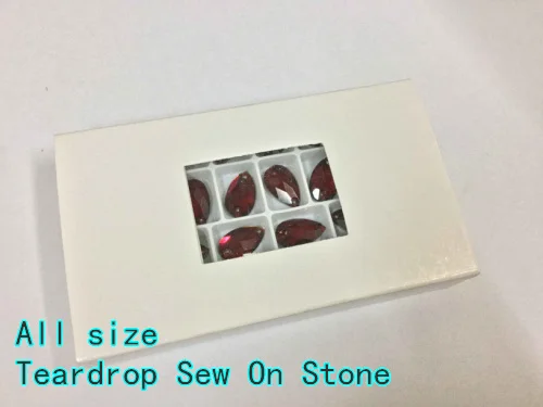 New Siam Color Teardrop sew on buttons Silver base crystal glass stone 2holes.7x12mm 11x18mm 13x22mm 16