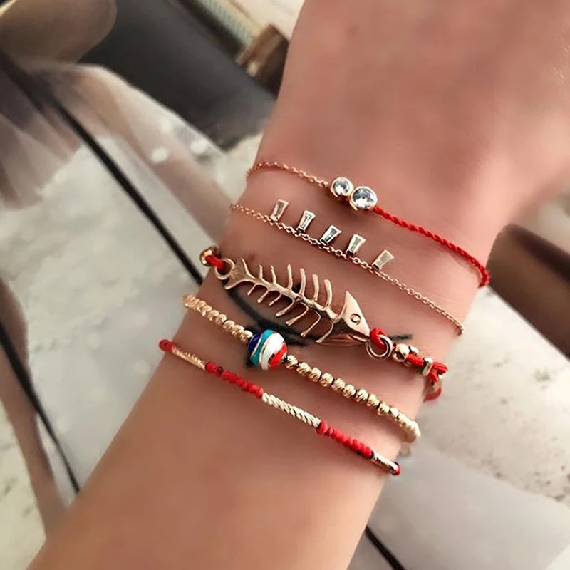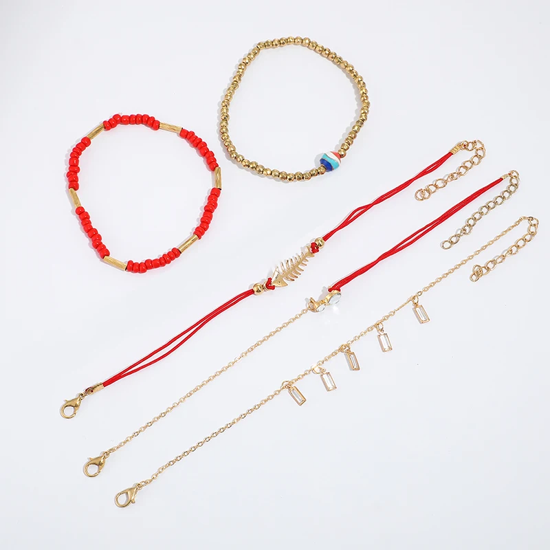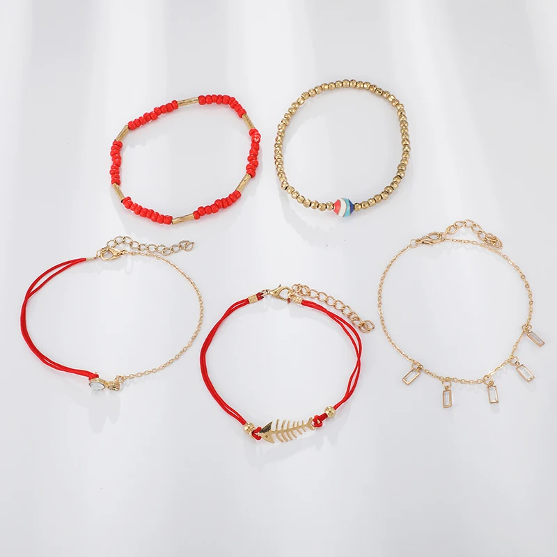 Buy Tocona 5pcs/sets Gold Colorful Bead Bracelets for Women Beach Fish Crystal Stone Rope Bangles Jewel