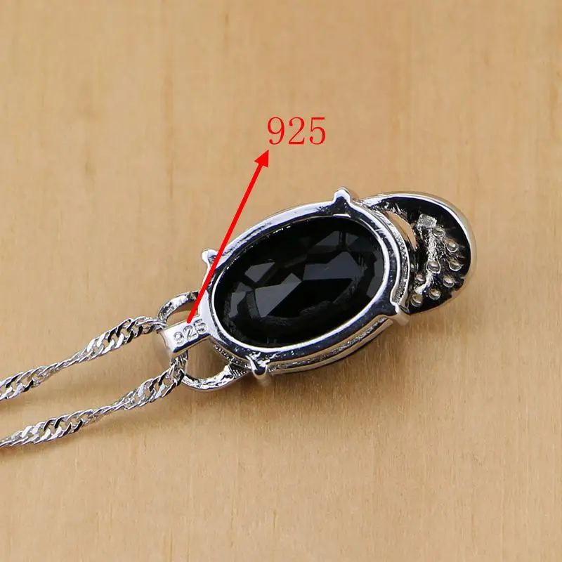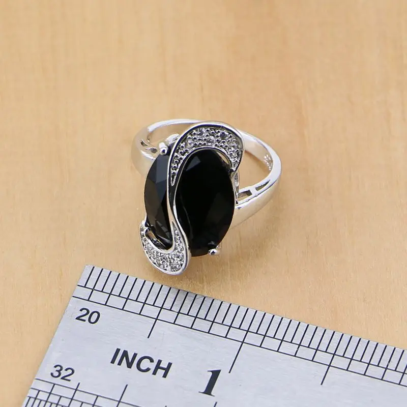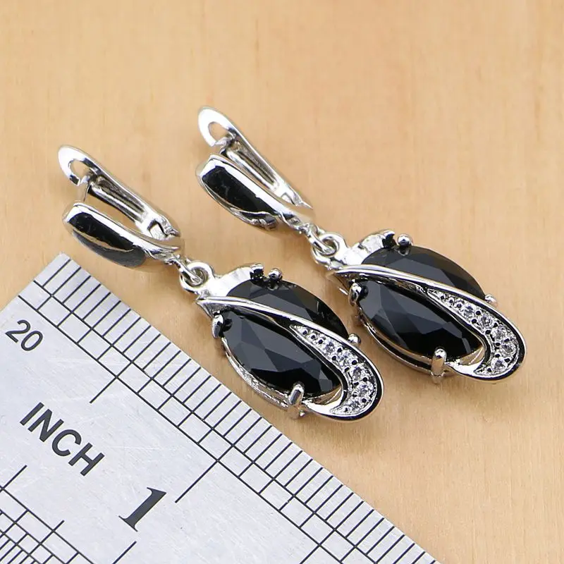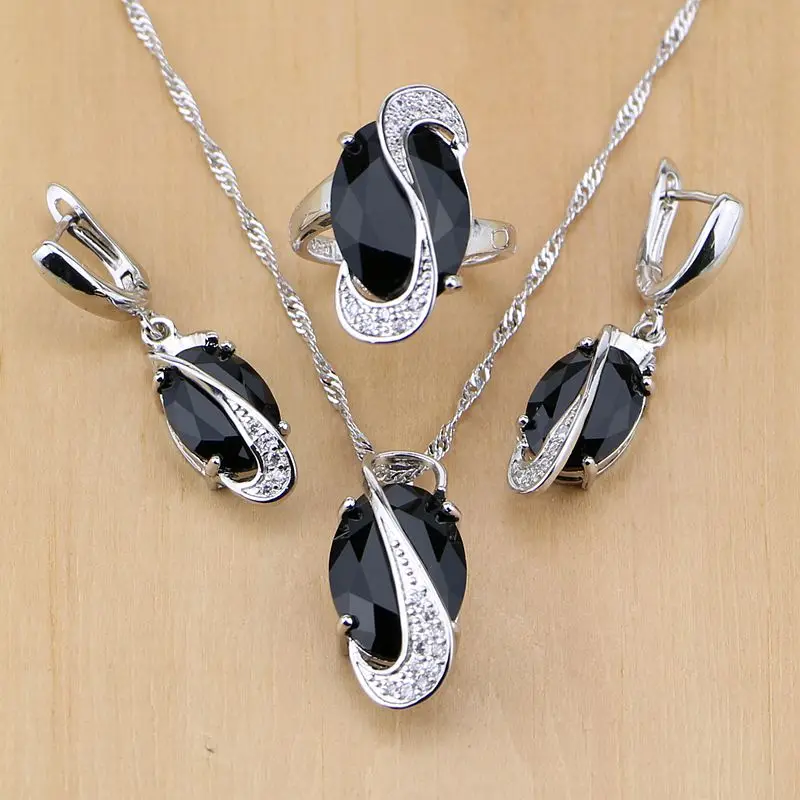 New Trendy Black Cubic Zirconia White Birthstones 925 Sterling Silver Jewelry Set For Women Party Earri