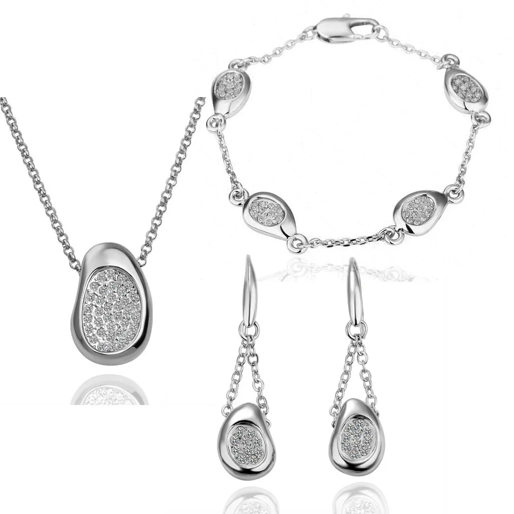 New Wholesales GP Full Rhinestone Pea Shape Pendant Necklace+Earrings+Bracelet+Ring Fashion Brand Jewel