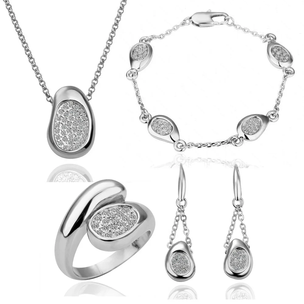 Promo Wholesales GP Full Rhinestone Pea Shape Pendant Necklace+Earrings+Bracelet+Ring Fashion Brand Jewel
