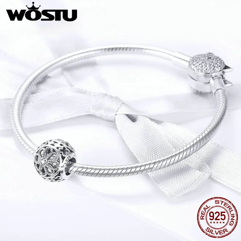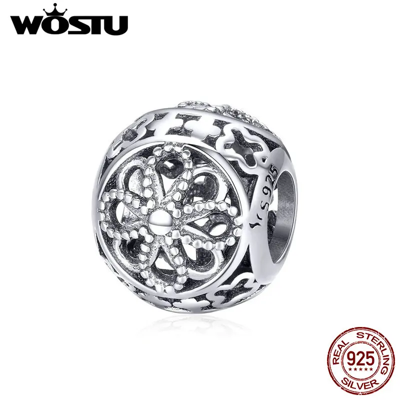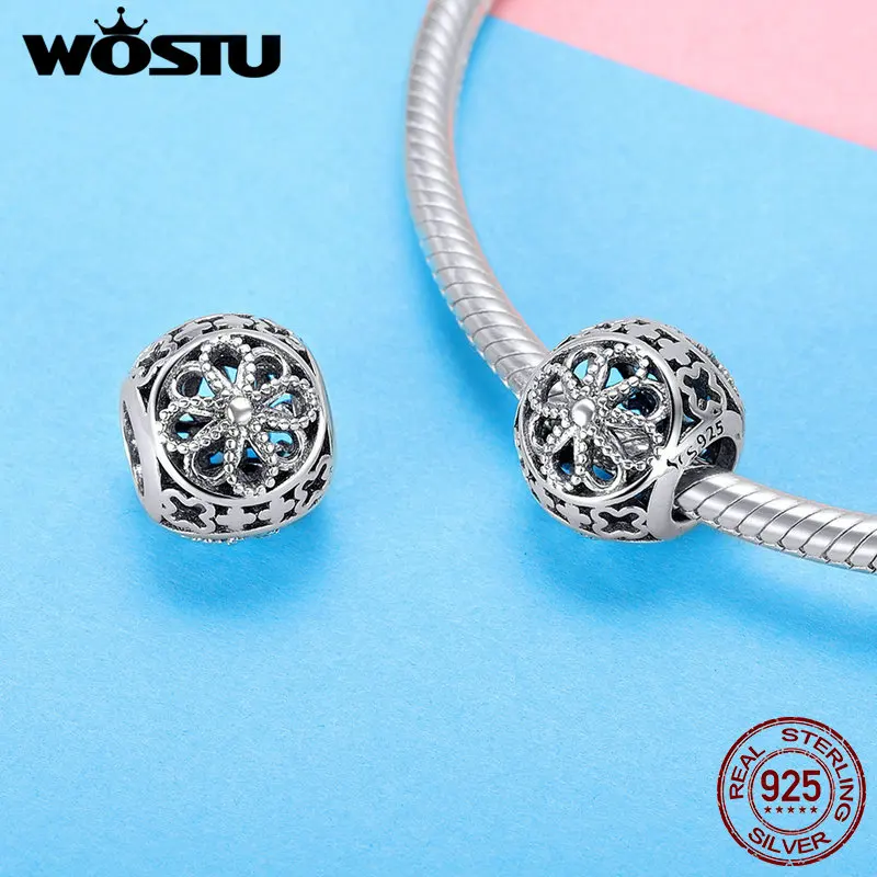 New WOSTU Real 925 Sterling Silver Vintage Flowers Openwork Bead Charms fit Original DIY Bracelet Bangl