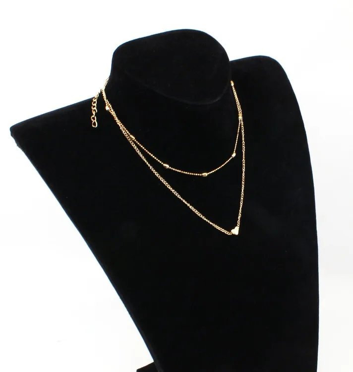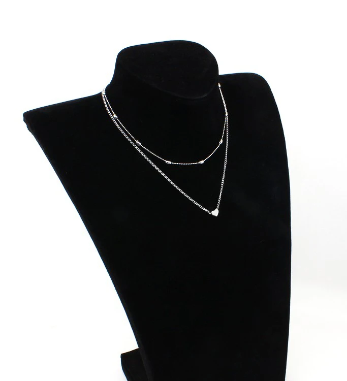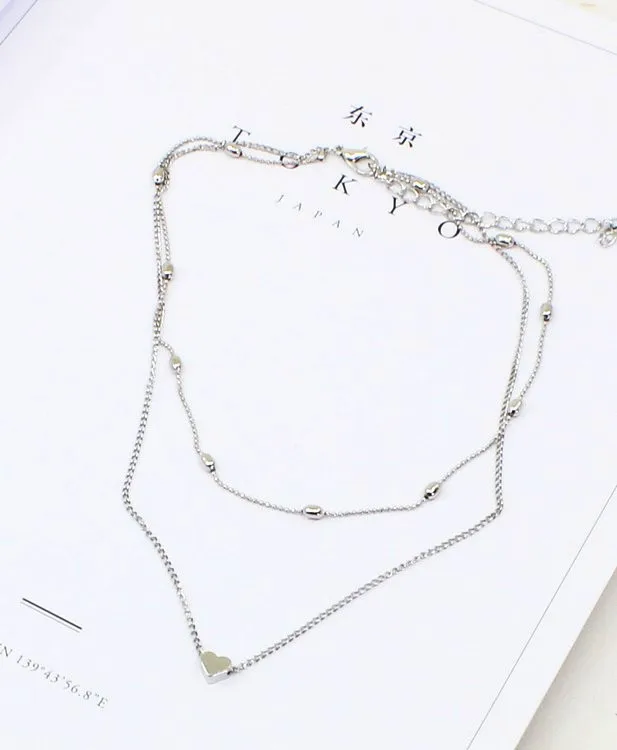 Promo 2019 New Arrivals Hottest Fashion Simple Silver Plated&Gold Color Heart Pendants Double Layer Choke