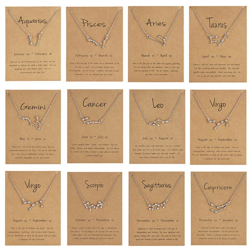 Best 8SEASONS Fashion Pendant Necklace 12 Zodiac Sign Gold Card Fashion Jewelry 12 Constellation Pendant