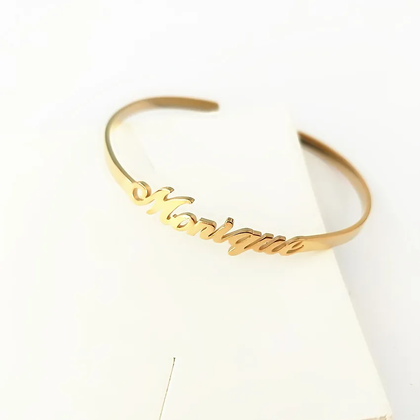 Promo CAVSUAT Bridesmaid Custom Name Bangles For Women Kids Handmade DIY Any Word Letter Flat Cuff Bracel