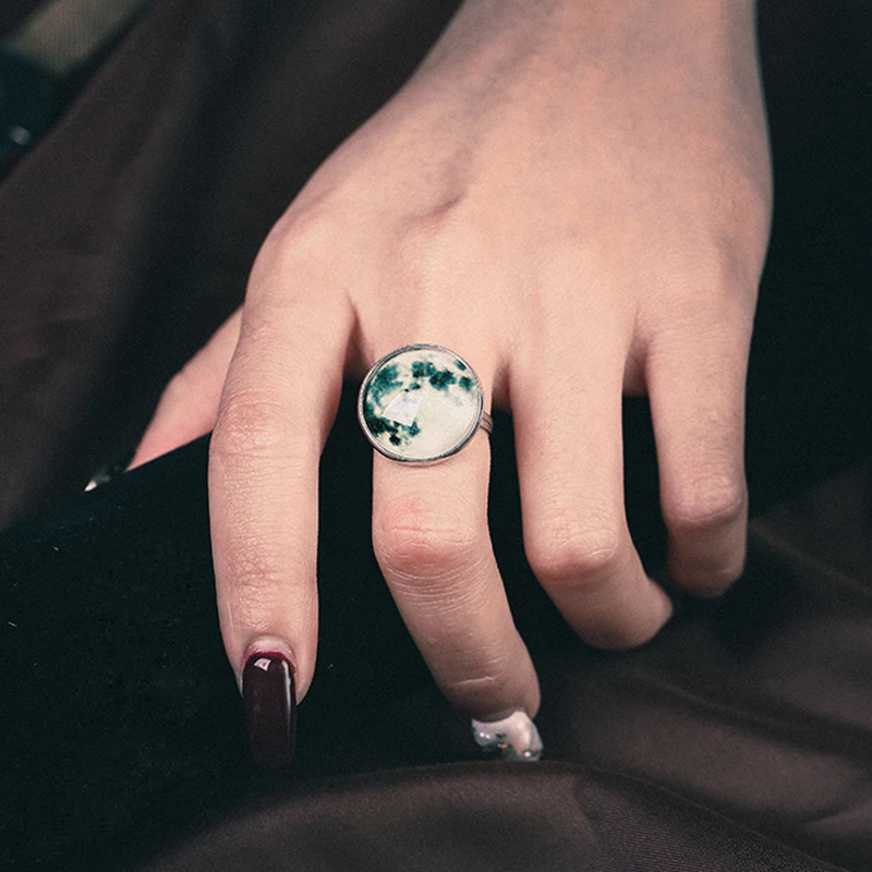 Promo Chic Open Adjustable Rings Shellhard Luminous Full Moon Glow In The Dark Finger Ring Bijoux Femme F