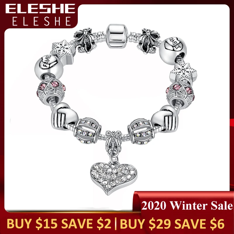 Promo ELESHE Luxury Brand Women Bracelet Silver Color Crystal Charm Bracelet for Women DIY 925 Beads Brac