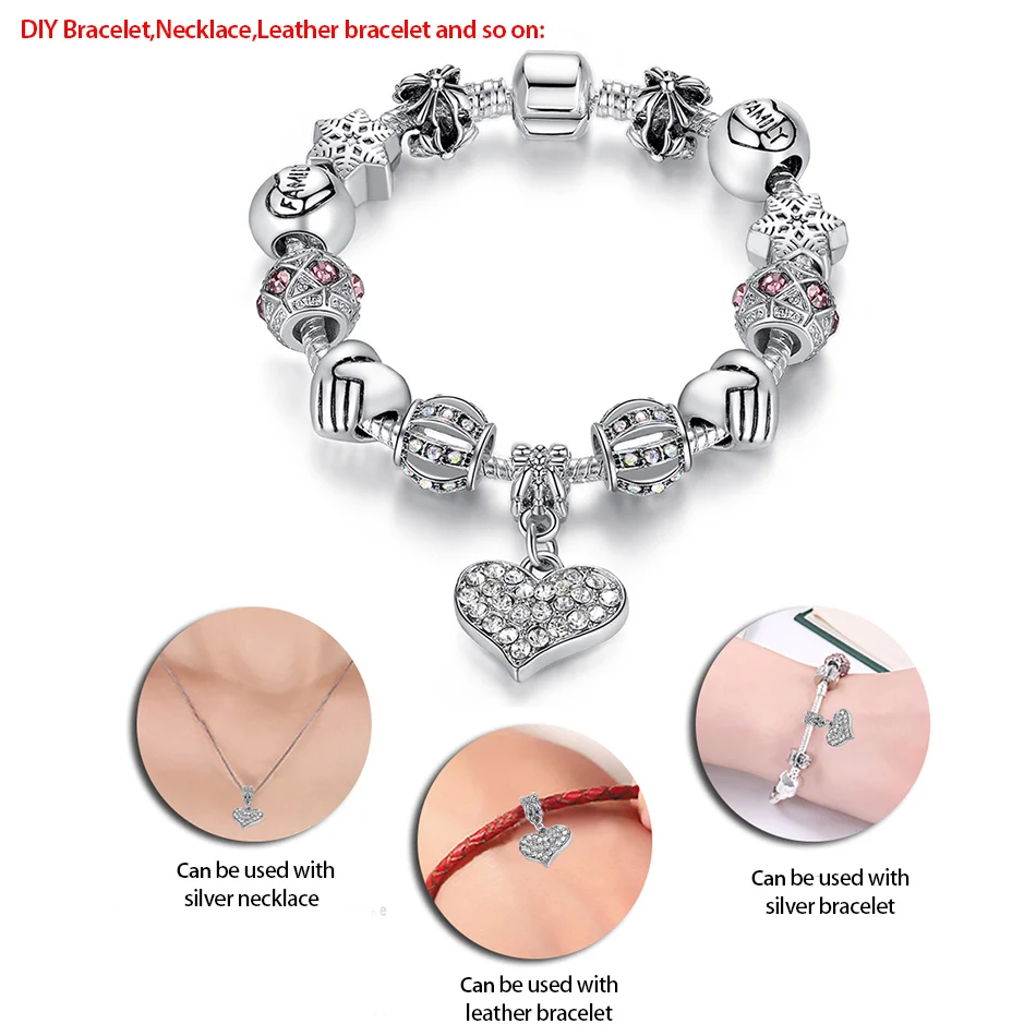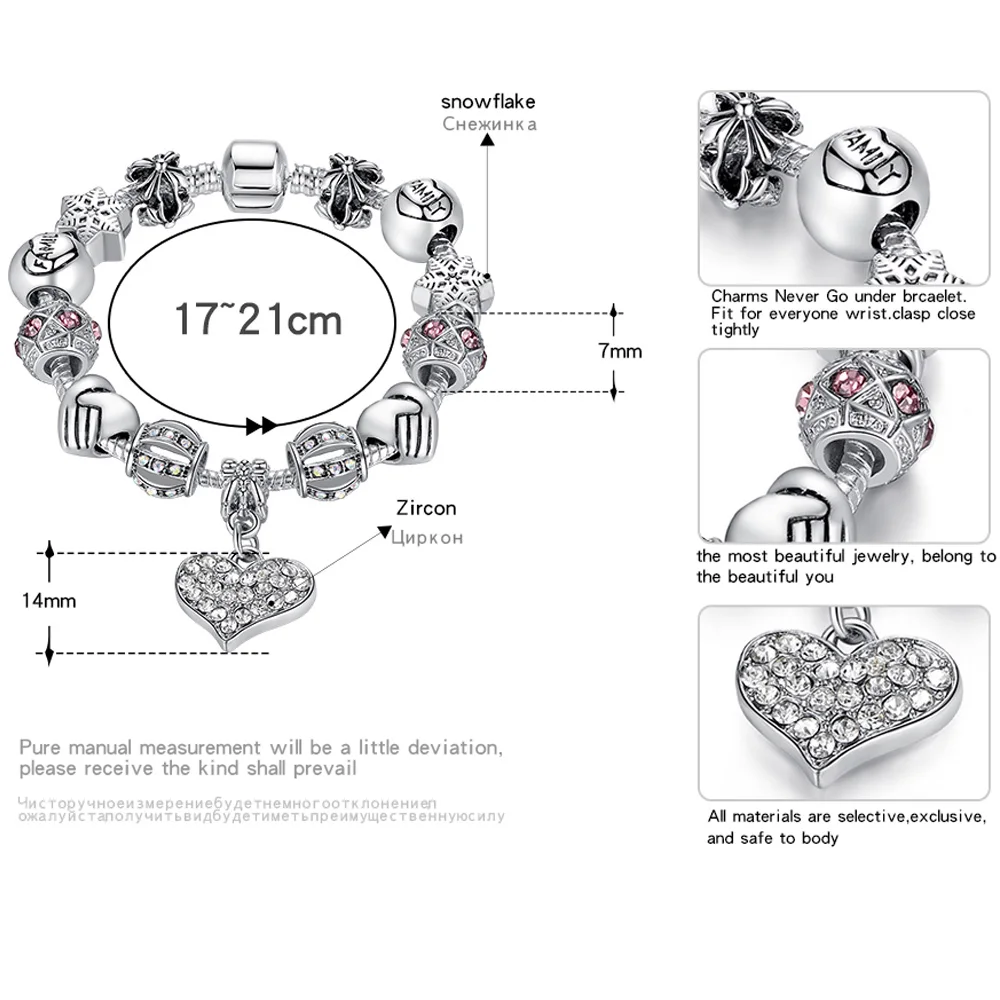 Best ELESHE Luxury Brand Women Bracelet Silver Color Crystal Charm Bracelet for Women DIY 925 Beads Brac