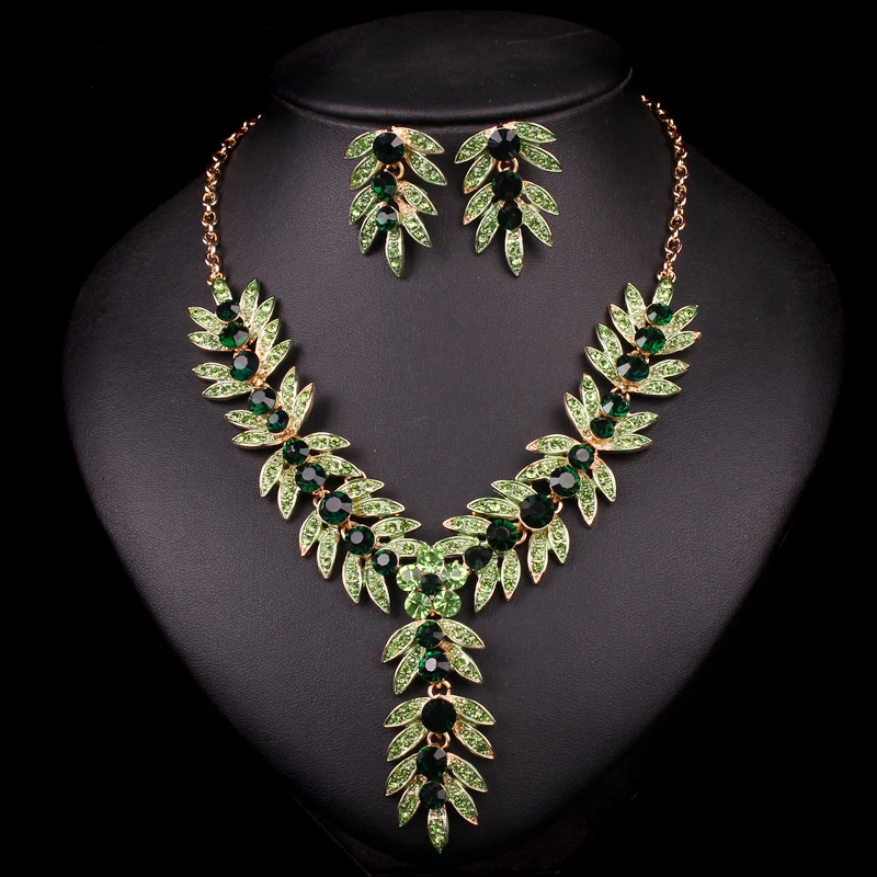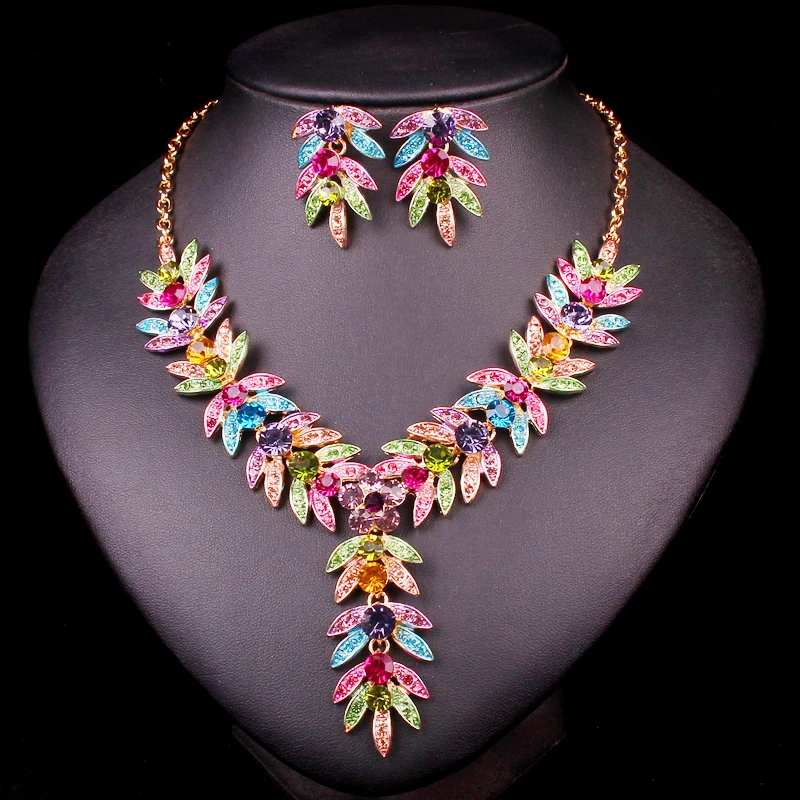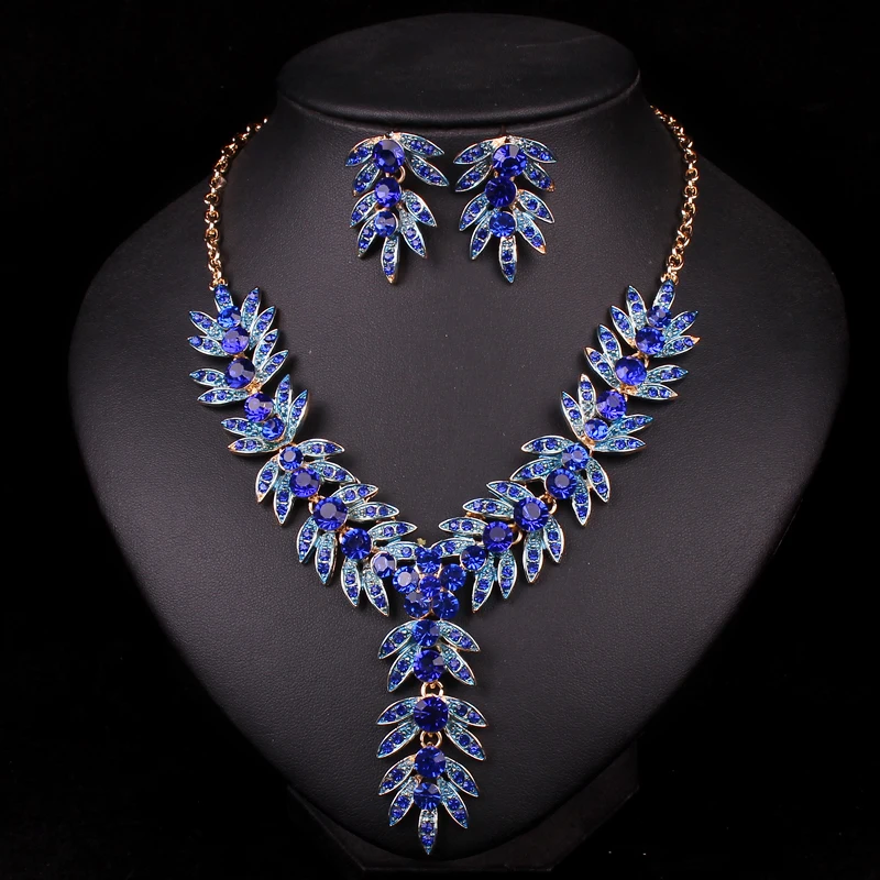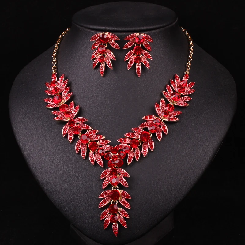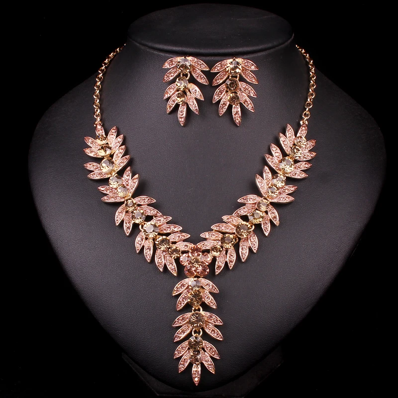 Promo Fashion Crystal Necklace Earrings Sets Gold Color Plated Bridal Jewelry Sets For Women Fashion Indi