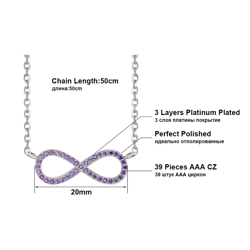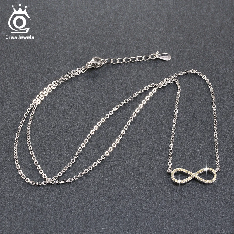 Promo ORSA JEWELS Silver Color Infinity Pendant Necklaces Full Shiny Yellow/Purple/Clear Cubic Zircon New