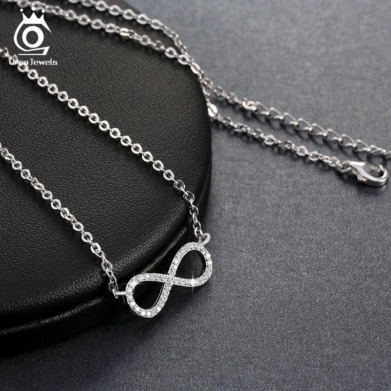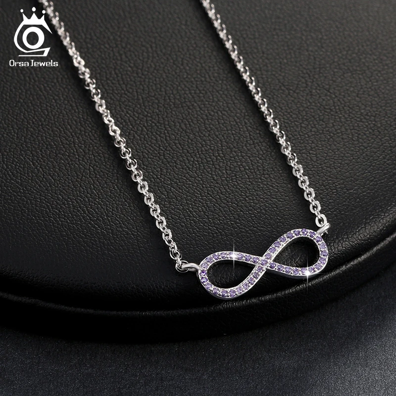 Best ORSA JEWELS Silver Color Infinity Pendant Necklaces Full Shiny Yellow/Purple/Clear Cubic Zircon New