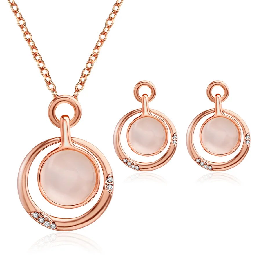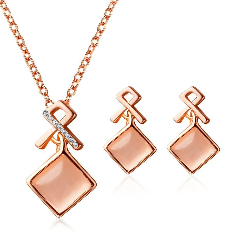 Promo Pendant Necklace sets For Woman Jewelry Sets Opal Women Choker Water Drop Earrings Rose Gold Color